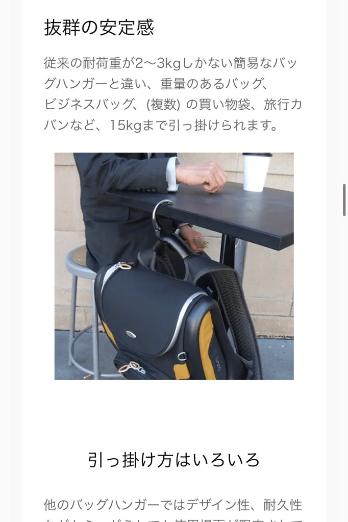 用途はカバンなどを引っ掛けるという