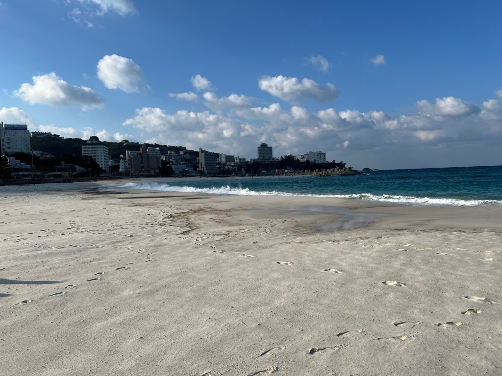 朝、白浜にあります白良浜へ散歩に