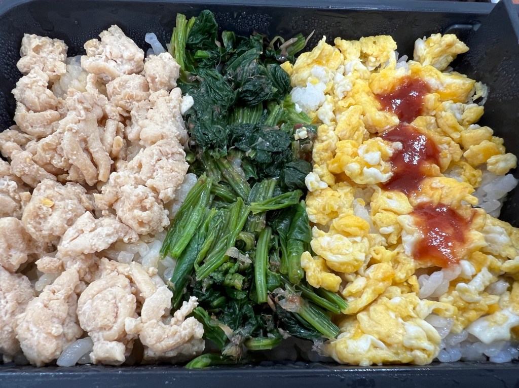 いますが、今日は三色弁当でした😀