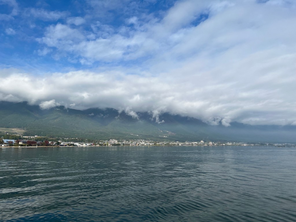 山が雲の傘を被っていたりと