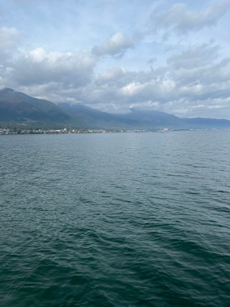 湖面も見ていると風が来るのがさざ波