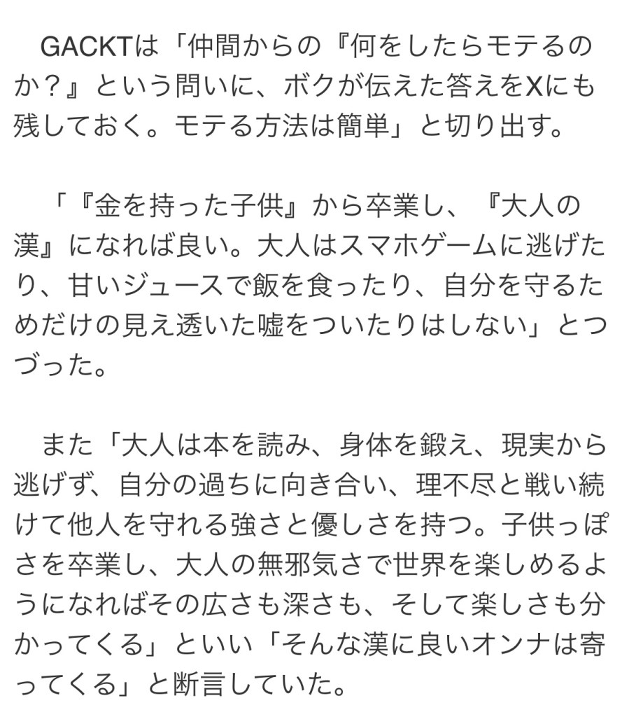 GACKTさんの知人から女性にモテる
