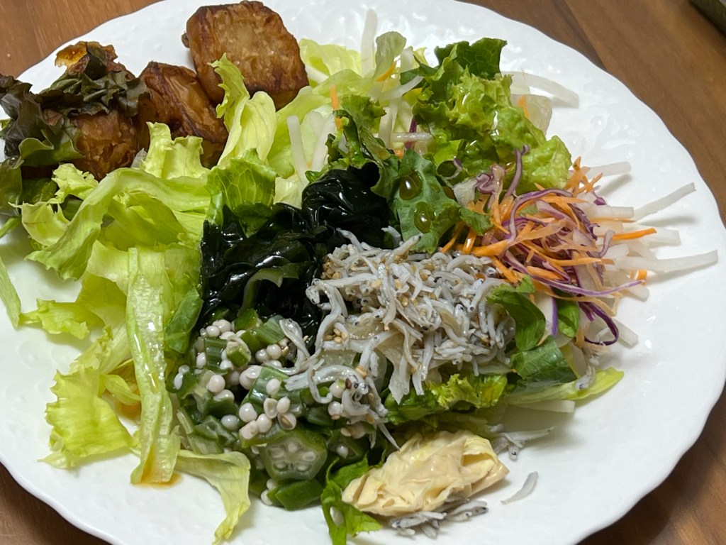 サラダ、小芋の唐揚げ等。