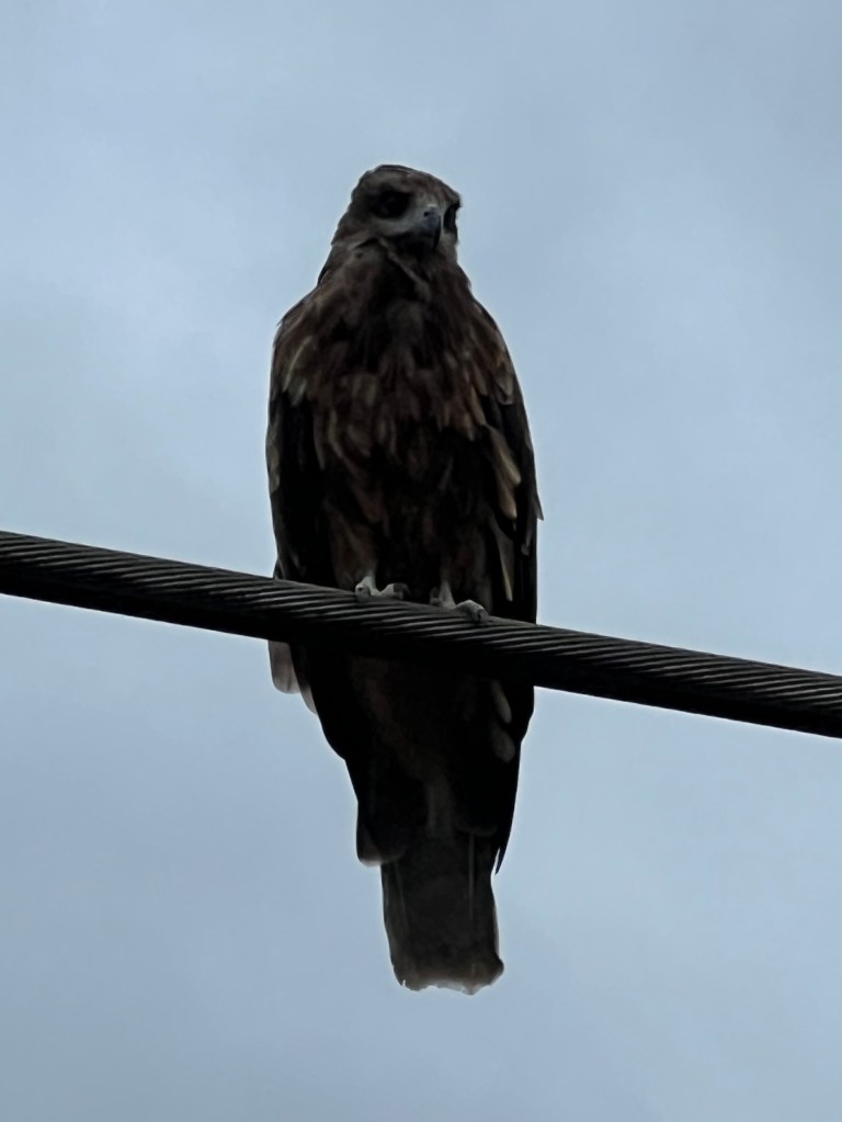電線にとまった鳶が結構な至近距離で