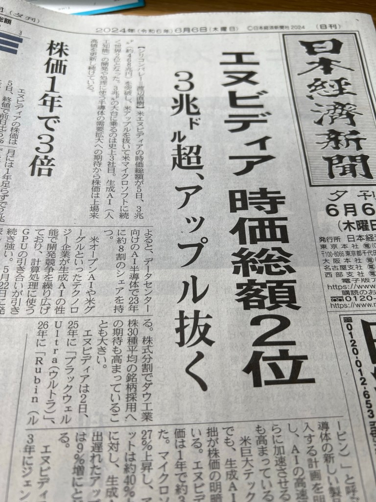 米エヌビディアが時価総額3兆ドル超と